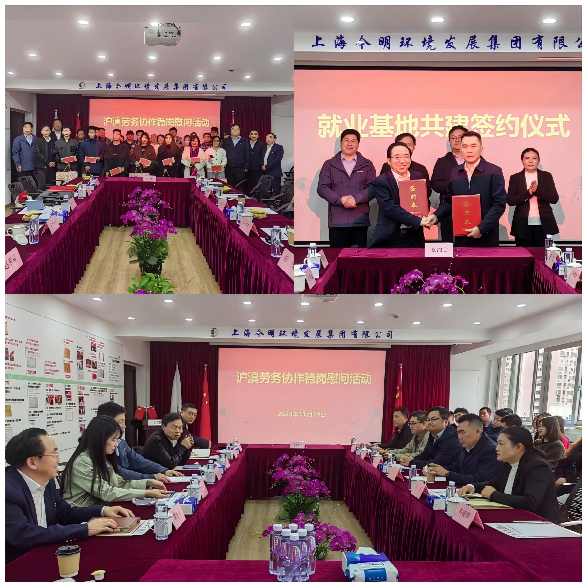 2024年11 月19日下午,为落实劳务协作帮扶措施,关爱外来务工人员,虹口区人社局、富宁县及人社局等领导在上海今明环境发展集团开展了一场意义重大的“劳务协作稳岗慰问”活动。